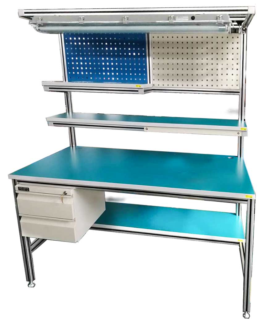 鋁(lv)合金工作臺(tai)人性化設計(ji),符合人體工程學原理(li),提(ti)高生產(chan)效率模塊化設計(ji),多種附件可(ke)視需(xu)要任(ren)意組合,且具有互(hu)換性;標準化設計(ji),防靜(jing)(jing)電工作臺(tai)、鋁(lv)合金工作臺(tai)可(ke)根據不(bu)同(tong)要求,定制您所需(xu)產(chan)品;高品質臺(tai)面,具有防靜(jing)(jing)電/防火/耐(nai)磨等性能(neng);鋁(lv)合金工作臺(tai)高低可(ke)調節,適合您的使用需(xu)求;支(zhi)撐采(cai)用鋼結構(gou)設計(ji),堅固耐(nai)用,可(ke)均勻承載500kg;整體防靜(jing)(jing)電,從根本上杜絕潛在靜(jing)(jing)電對產(chan)品的威脅(xie)。