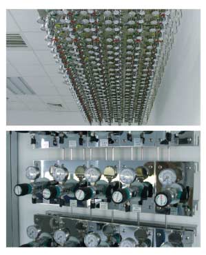 在現(xian)代化(hua)的(de)(de)(de)(de)(de)實(shi)(shi)(shi)(shi)驗室中(zhong),為(wei)了(le)(le)完成(cheng)實(shi)(shi)(shi)(shi)驗,需(xu)要(yao)用到多種分析儀(yi)(yi)器, 如(ru)氣相色(se)譜儀(yi)(yi),原子吸收,氣一(yi)質聯(lian)用儀(yi)(yi),ICP等等,其中(zhong)這(zhe)(zhe)些 儀(yi)(yi)器需(xu)要(yao)用到高純氣體(ti),傳統(tong)(tong)的(de)(de)(de)(de)(de)做法是采用獨(du)立(li)鋼瓶(ping)(ping)分散(san)供(gong)氣 的(de)(de)(de)(de)(de)模(mo)式,這(zhe)(zhe)種供(gong)氣模(mo)式每(mei)臺(tai)儀(yi)(yi)器設備單(dan)獨(du)配(pei)置氣體(ti)鋼瓶(ping)(ping),分別 滿足每(mei)臺(tai)儀(yi)(yi)器設備的(de)(de)(de)(de)(de)使用,但隨著(zhu)近年來(lai)實(shi)(shi)(shi)(shi)驗室投(tou)資的(de)(de)(de)(de)(de)不(bu)斷加(jia) 大(da),儀(yi)(yi)器設備的(de)(de)(de)(de)(de)迅速增(zeng)加(jia),用氣量也逐年增(zeng)加(jia),傳統(tong)(tong)的(de)(de)(de)(de)(de)供(gong)氣模(mo)式 已經(jing)難以(yi)(yi)滿足儀(yi)(yi)器設備增(zeng)加(jia)的(de)(de)(de)(de)(de)需(xu)求,同時分散(san)供(gong)氣模(mo)式帶來(lai)的(de)(de)(de)(de)(de) 實(shi)(shi)(shi)(shi)驗室布局混亂,鋼瓶(ping)(ping)的(de)(de)(de)(de)(de)頻繁更換也對實(shi)(shi)(shi)(shi)驗室的(de)(de)(de)(de)(de)管理和維護造(zao) 成(cheng)了(le)(le)困(kun)難,為(wei)了(le)(le)解決以(yi)(yi)上兩(liang)個方(fang)面的(de)(de)(de)(de)(de)問題,就(jiu)需(xu)要(yao)一(yi)套安(an)全性(xing) 高且能(neng)實(shi)(shi)(shi)(shi)現(xian)集中(zhong)分配(pei)供(gong)氣的(de)(de)(de)(de)(de)系統(tong)(tong)完成(cheng)從氣源向(xiang)儀(yi)(yi)器的(de)(de)(de)(de)(de)供(gong)氣這(zhe)(zhe) 就(jiu)是實(shi)(shi)(shi)(shi)驗室高純氣體(ti)管道系統(tong)(tong)的(de)(de)(de)(de)(de)功能(neng)所在。